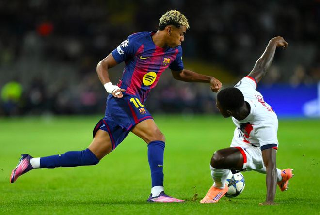 开场之后,两支球队踢得都相当丝滑,球员也足够放松,攻防转换的节奏相当快,“世一左”门德斯和亚马尔的对位值得关注。